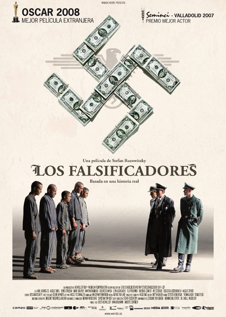 20世纪30年代,二次大战如火如荼。而萨利(Karl Markovics卡尔•马克维斯 饰)凭借一手高超的伪造技巧春风得意,佳肴美女信手拈来,好不自在。但是他的好日子并为持续多久,很快他便因为遭罪被逮捕,随后投入毛特豪森集中营。 时德国纳粹图谋制造大量假币,以扰乱同盟国的经济。萨利的才能得到发掘,他成了这个秘密伪钞制造小组的头目,但良心却促使他选择了另一条路…… 本片根据阿道夫•博格(Adolf Burger)原著《魔鬼工厂》(The Devils Workshop),书中所述为作者亲身经历,影片荣获2008年奥斯卡最佳外语片奖和2007年德国电影金像奖最佳男配角奖(Devid Striesow)。